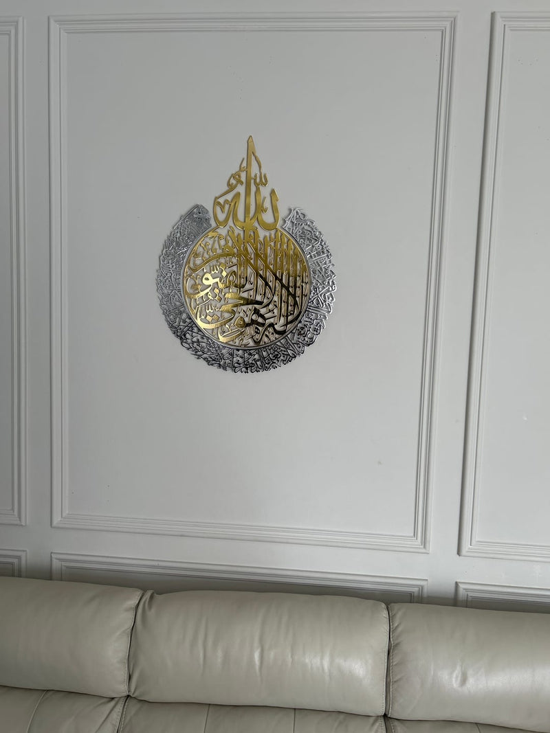 Calligraphie Ayat al-Kursi : Élégance et spiritualité dans un art mural islamique en métal